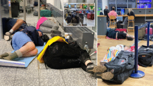 In Paris/Brussels, passengers reported difficulty securing hotel rooms due to last-minute demand, forcing many to sleep in terminals or pay inflated prices for available lodging.