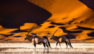 Landscapes that define the experience. The Namibia’s appeal is inseparable from its iconic places such as The Namib Desert – home to the world’s oldest desert, where the white clay pan of Deadvlei is framed by the tallest red dunes on Earth: Etosha National Park – with its vast 4,800-square-kilometre salt pan, offering one of Africa’s most distinctive wildlife viewing experiences: Damaraland – where rugged mountains, ancient rock art, and desert-adapted elephants and rhinos reflect a delicate balance between survival and coexistence: and Swakopmund and Walvis Bay – coastal hubs that contrast stark desert interiors with ocean air, adventure sports, and urban energy.